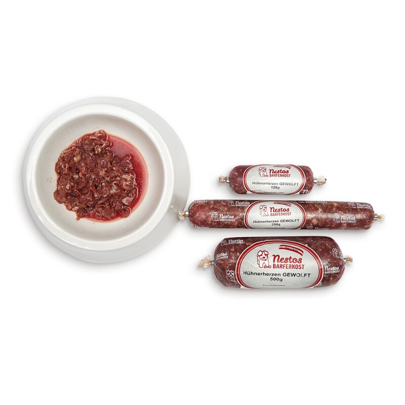 Hühnerherzen sind reines Muskelfleisch mit geringerem Fettanteil, liefern viele Mineralstoffe und Vitamine u.a. sehr viel Vitamin K, Kalium, Natrium, Jod und Zink.