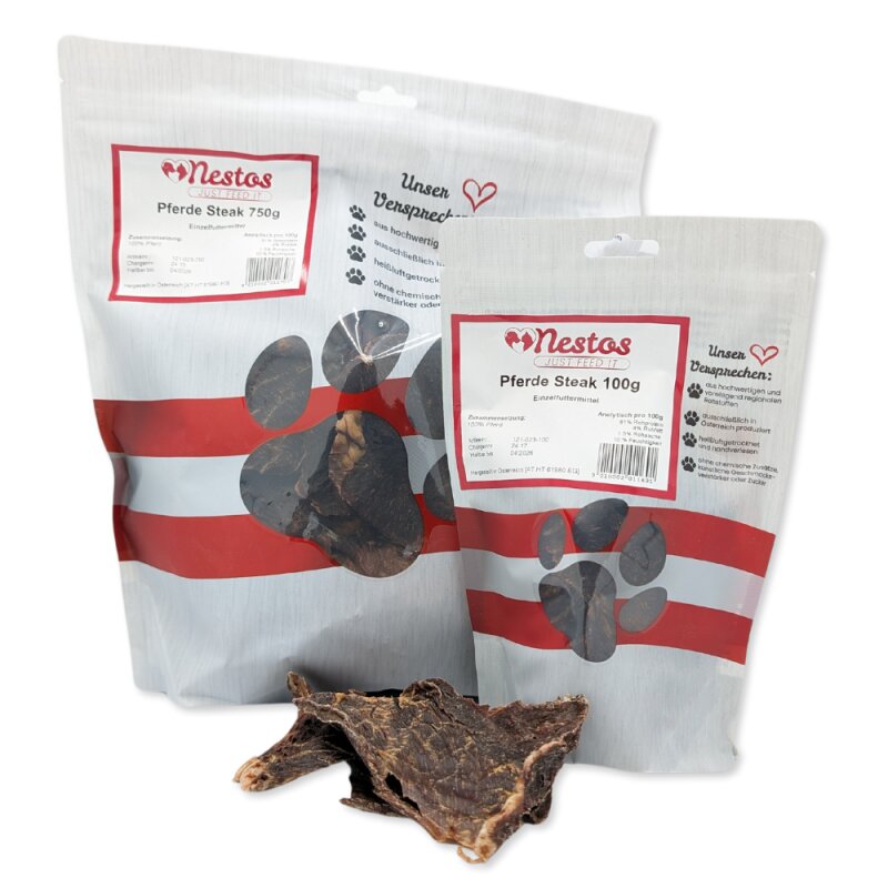 Unser Nestos Pferde Steak ist eine gesunde Belohnung für kleine und große Hunde.