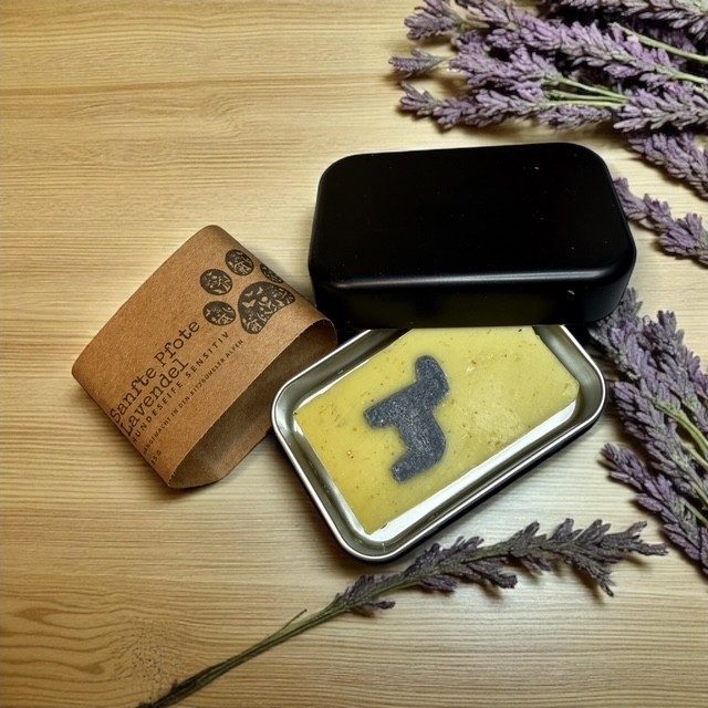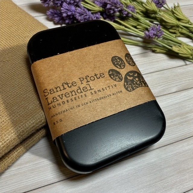 Wilde Blüte Sanfte Pfote Waschseife Lavendel 85g in der praktischen Metalldose
